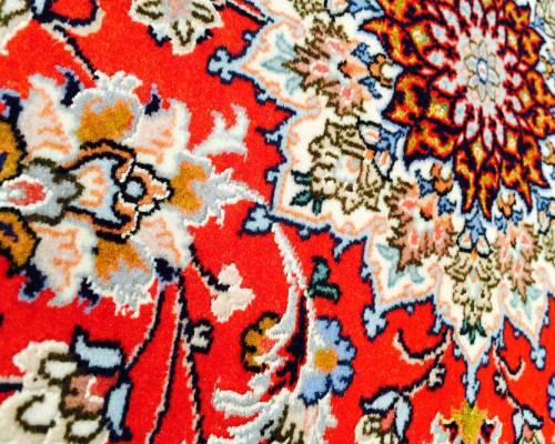 ペルシャ絨毯は見る角度や光の差込み具合でつやや色彩が微妙に変化し、 質の高いウールやシルクのなめらかさ、優美で繊細な文様、高い耐久性。 ひと目ひと目、長い時間を掛けて織りあげられたペルシャ絨毯は、 縦糸に色糸を一本一本織り結んでおり、色持ちの良いウールと滑らかな感触と美しい光沢をお楽しみいただけます。